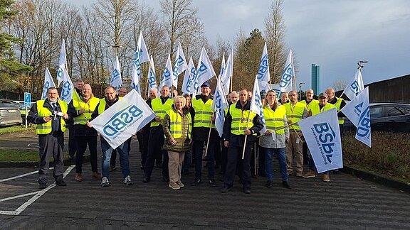 Beschäftigte der Autobahn GmbH machten Ihrem Unmut vor der Zentrale der Autobahn GmbH in Berlin Luft.